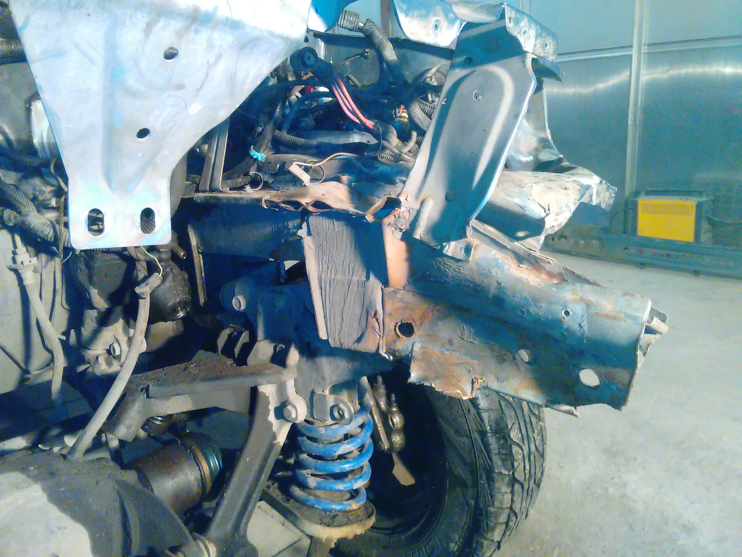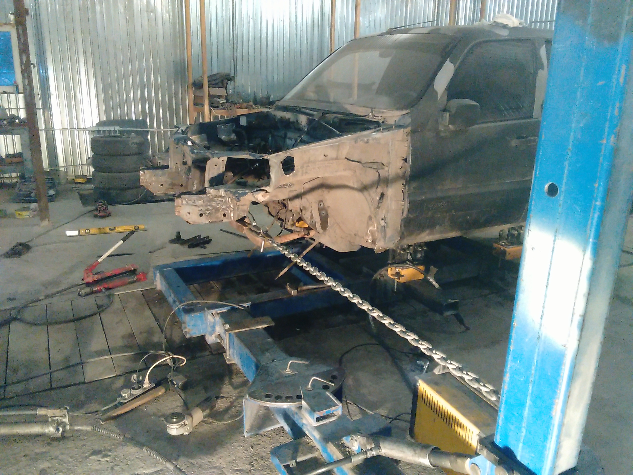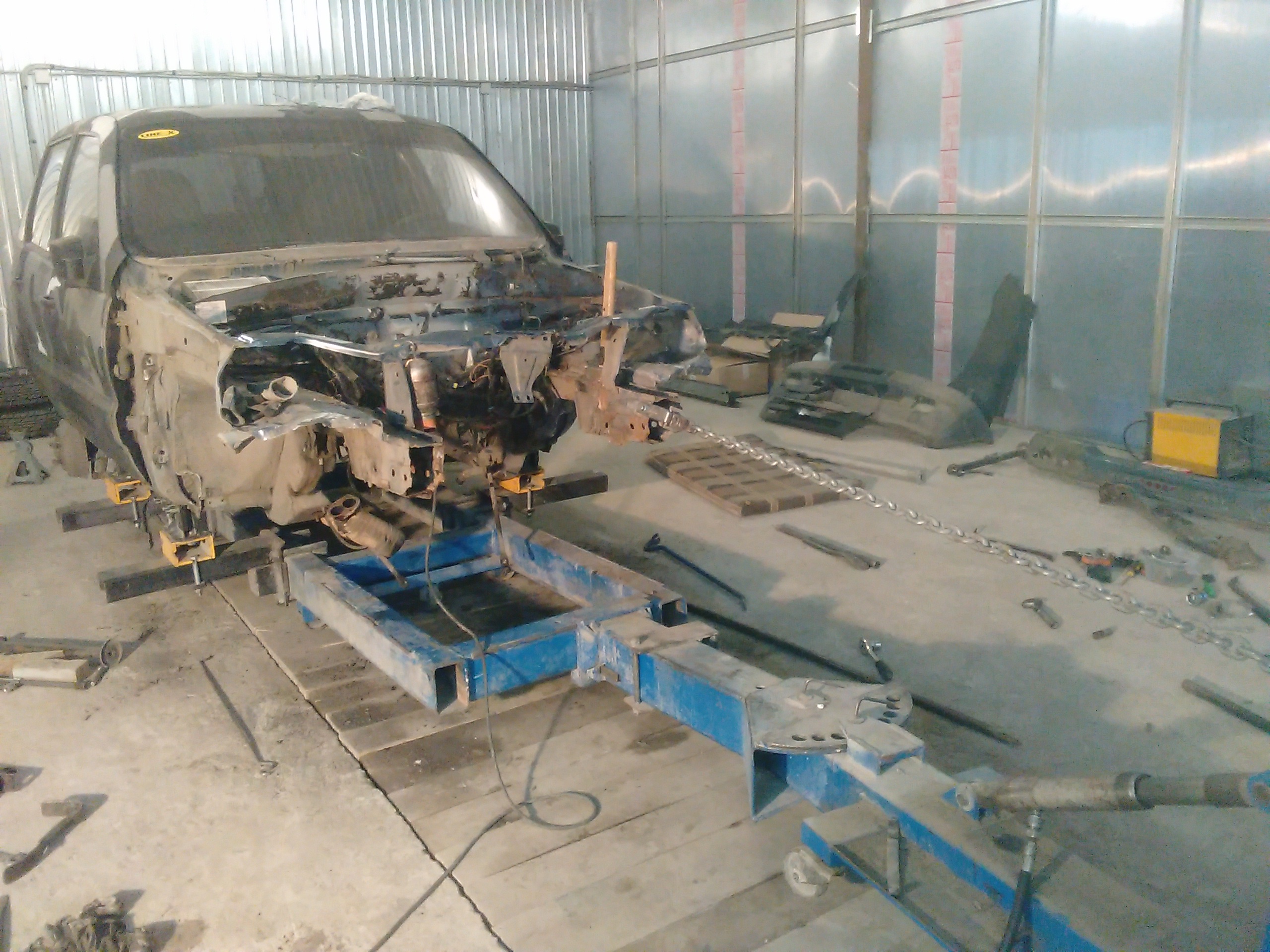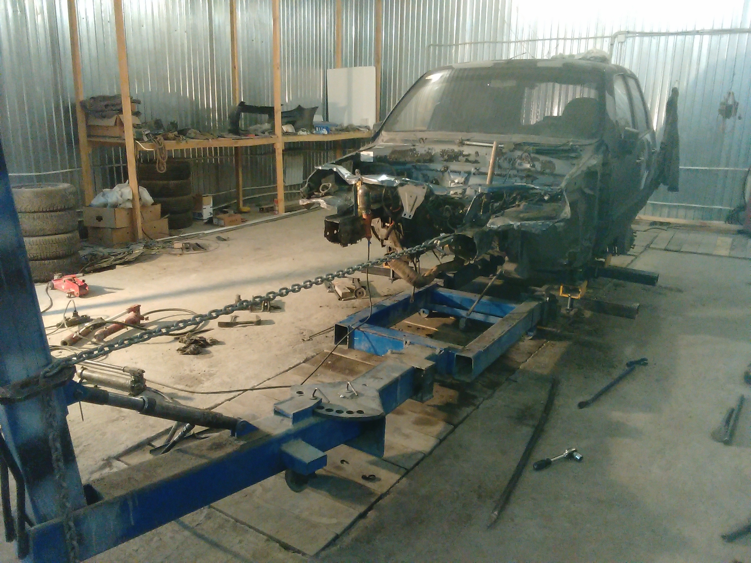 Отчет по очередной Шеви Нива. Заломаны оба лонжерона и оба брызговика,так называемые мягкие части….. Правый ещё и ушёл в салон на 5 см. Официалы не взялись ремонтировать эти детали,только замена. Нам удалось восстановить эти детали. Правда пришлось снять передний мост в сборе с балкой, ну и потом соответственно поставить всё на место. В результате машина уехала своим ходом.