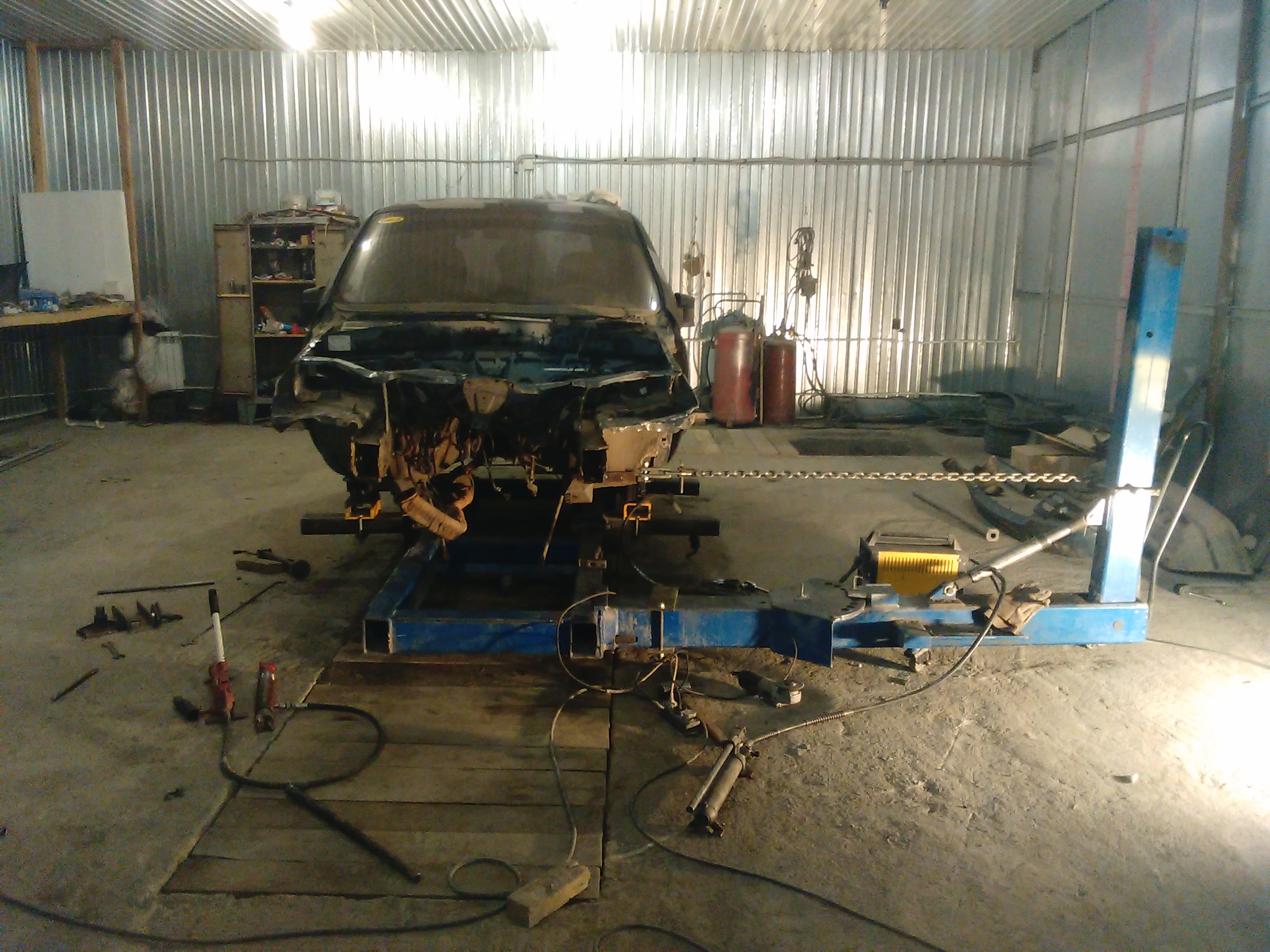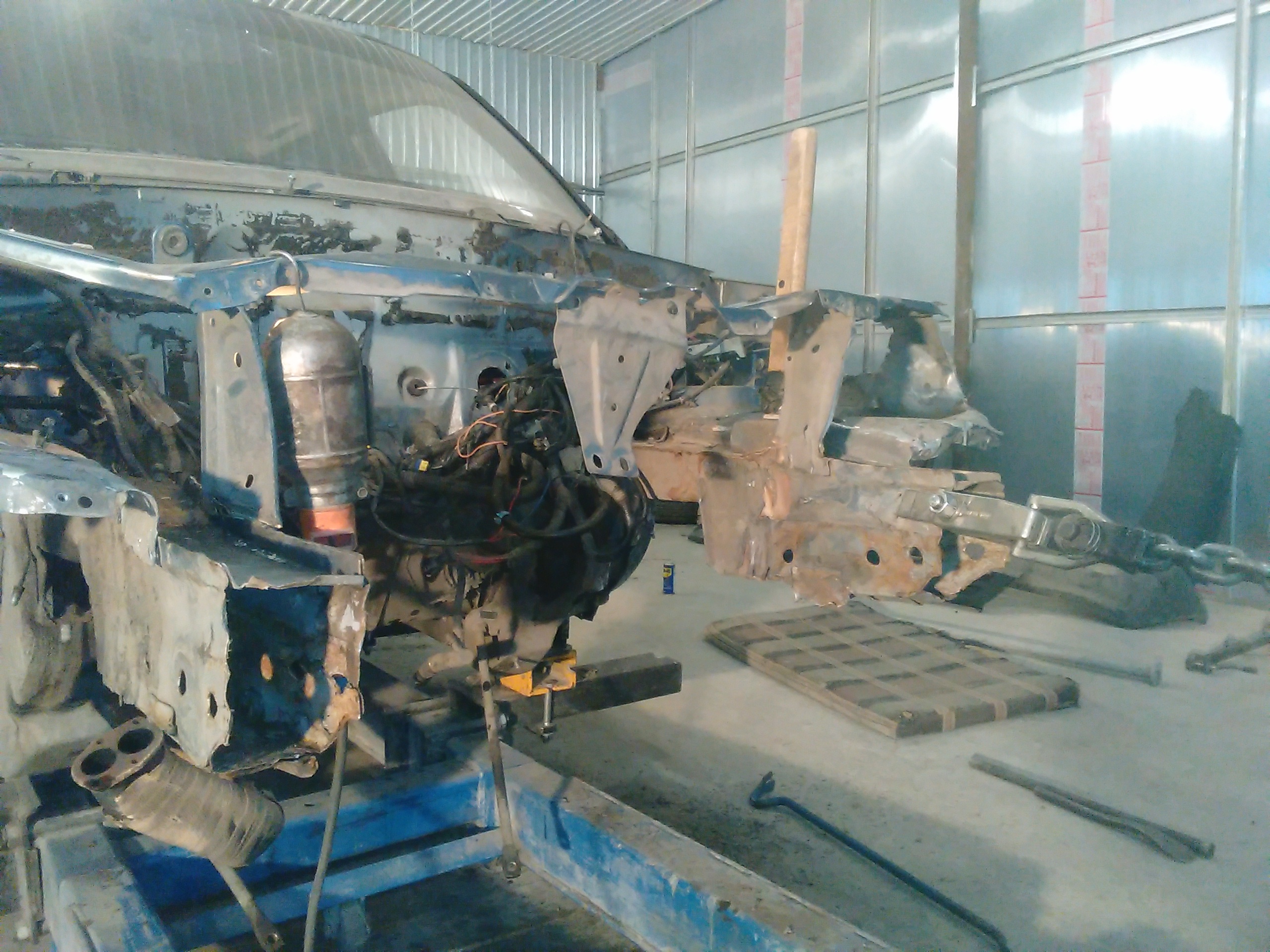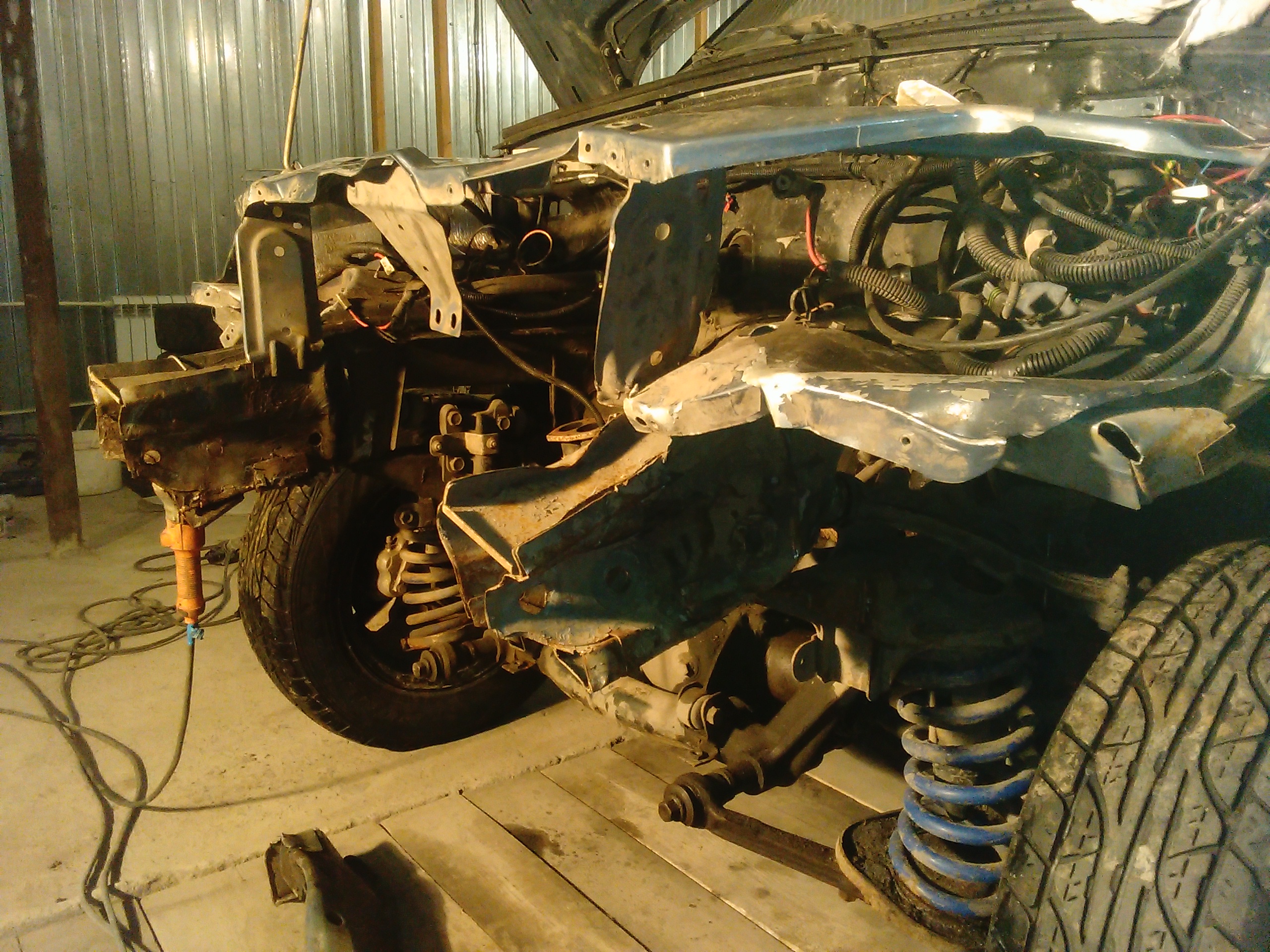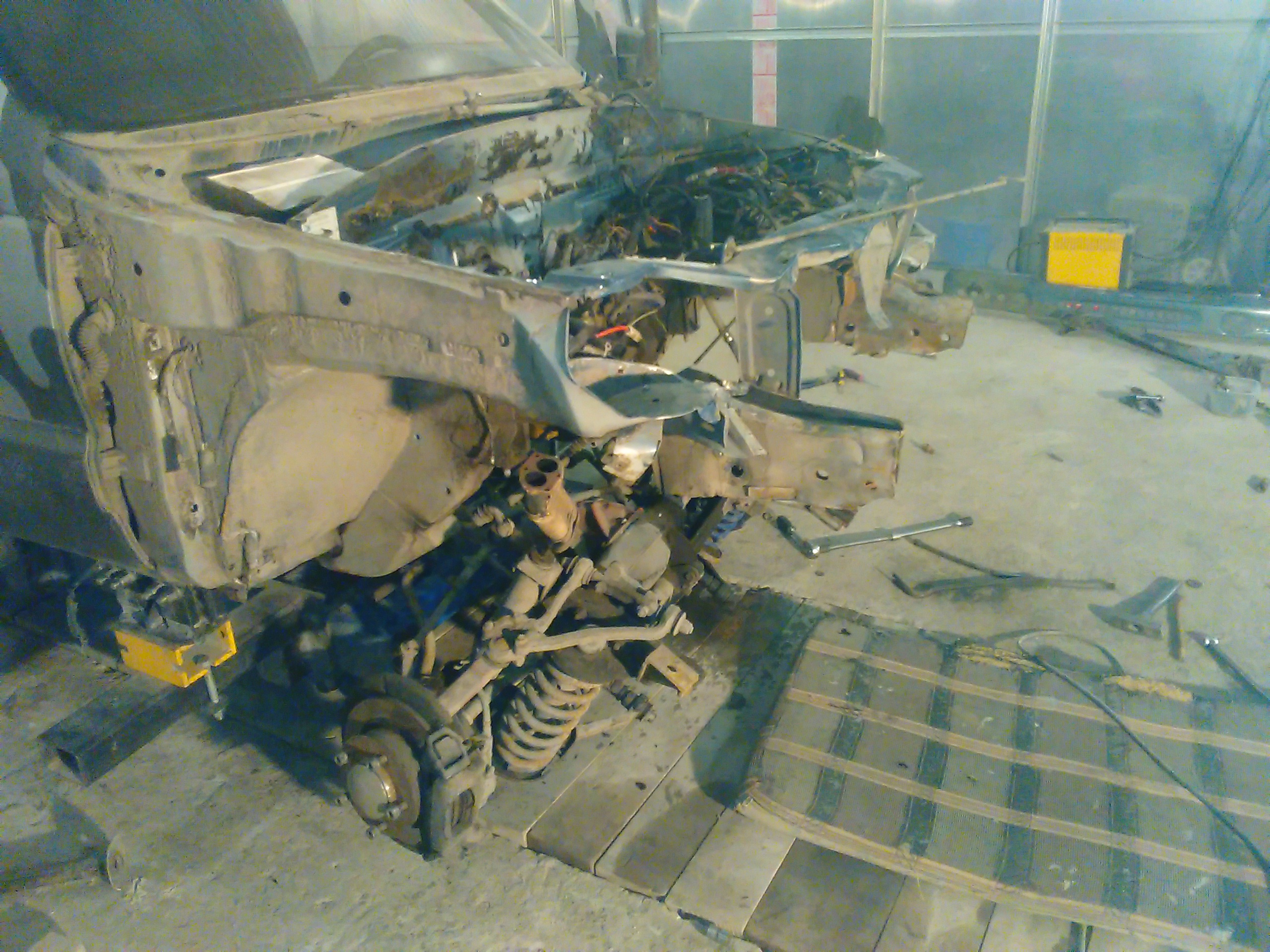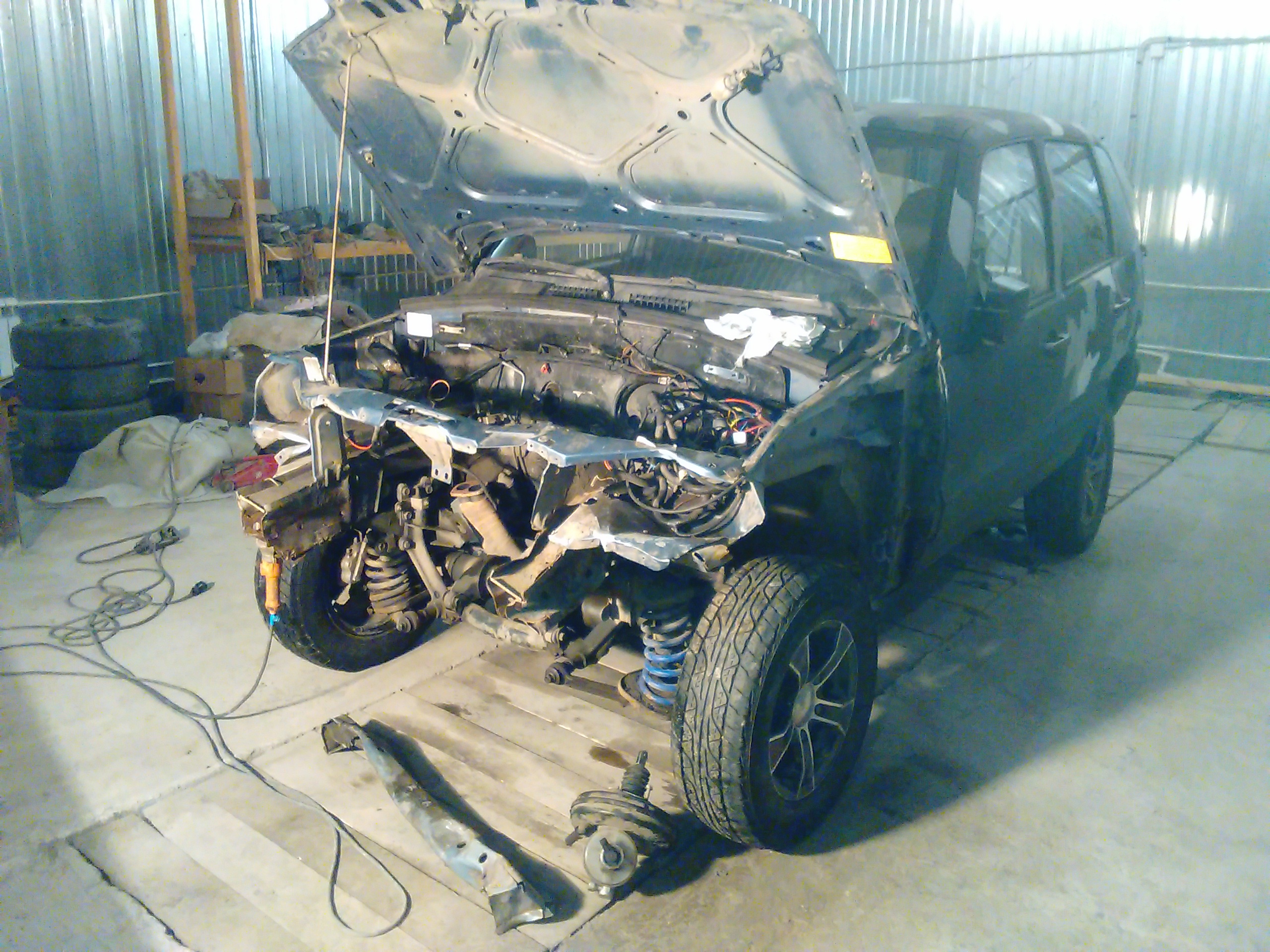 Отчет по очередной Шеви Нива. Заломаны оба лонжерона и оба брызговика,так называемые мягкие части….. Правый ещё и ушёл в салон на 5 см. Официалы не взялись ремонтировать эти детали,только замена. Нам удалось восстановить эти детали. Правда пришлось снять передний мост в сборе с балкой, ну и потом соответственно поставить всё на место. В результате машина уехала своим ходом.