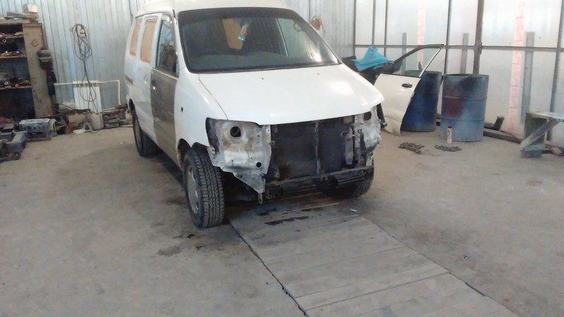 Тойота Хайс.Сначало стенд,мордашку подправить,устранить перекос.Затем всю машину в белый раптор.Полный покрас,включая бампера ,решётки ,накладки фар.