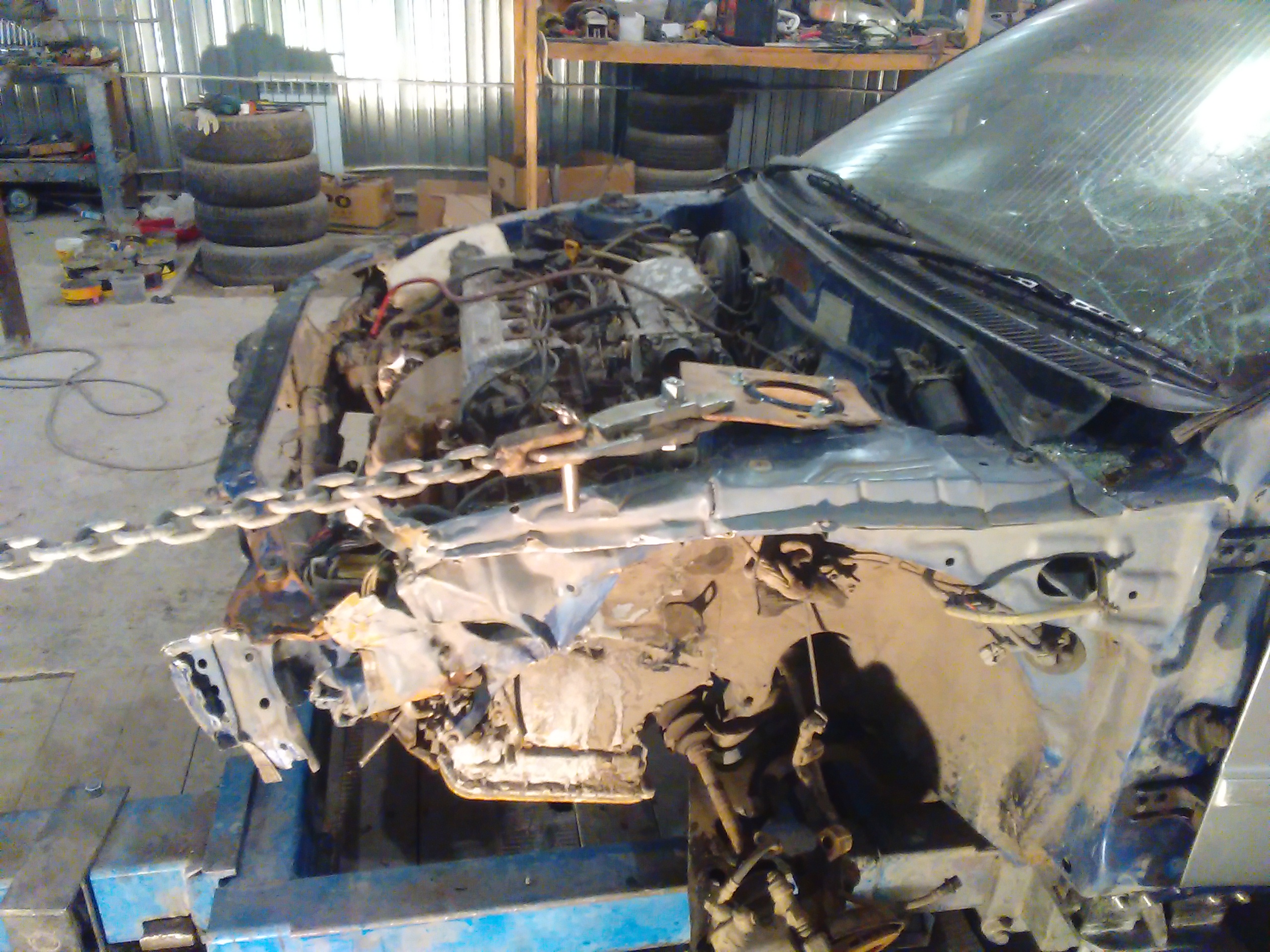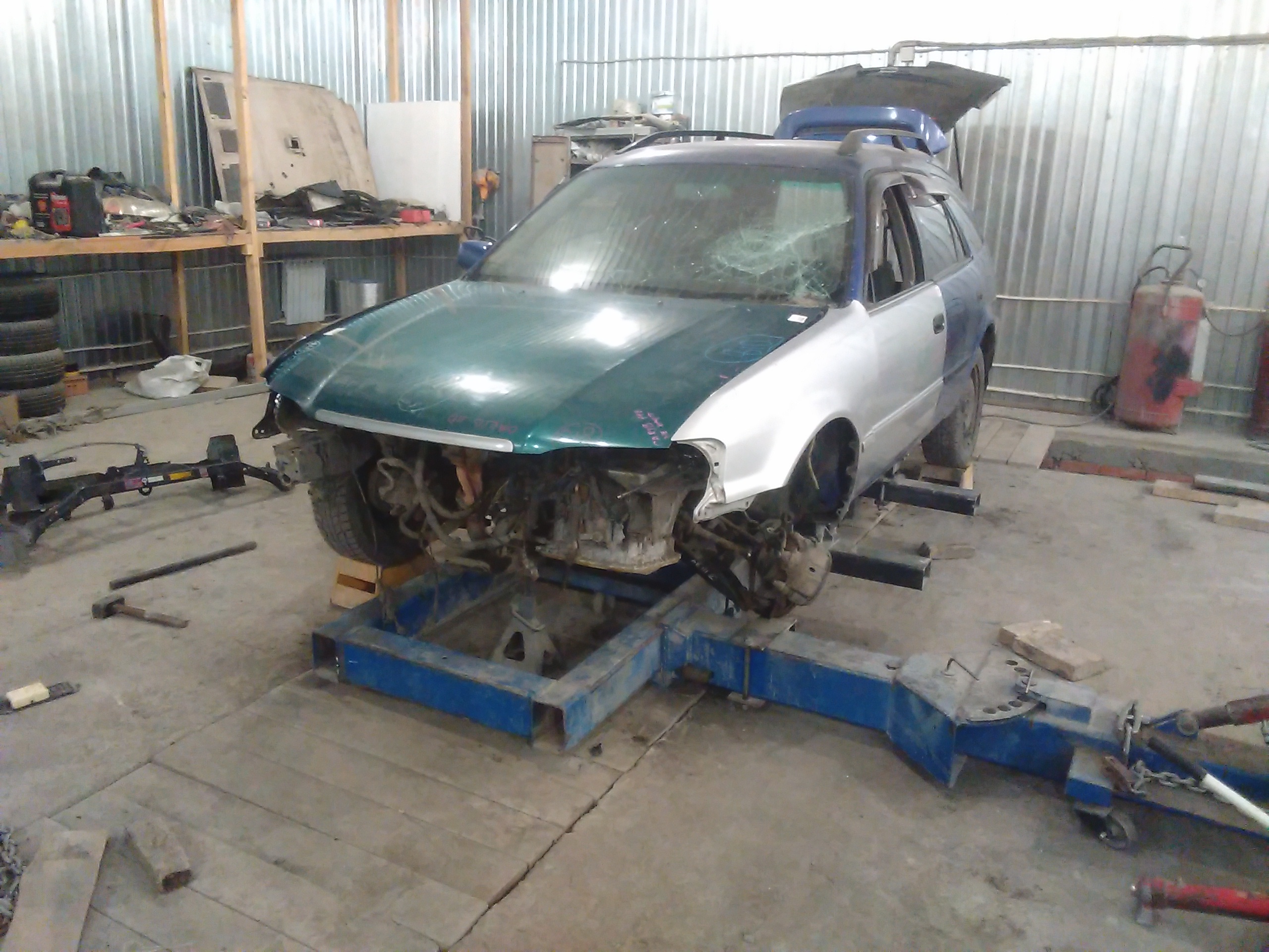 Тойота Кариб. Восстановление геометрии кузова, замена ноуската, лонжерона,устранение косяков от других ремонтов.Без покраски.