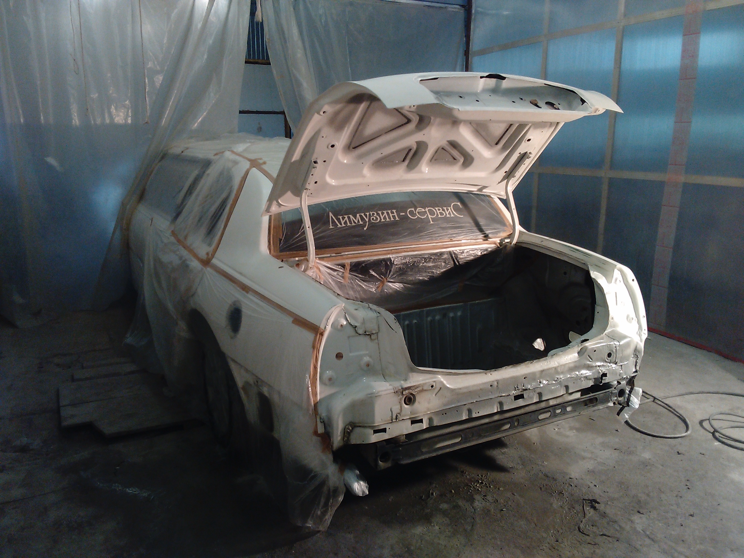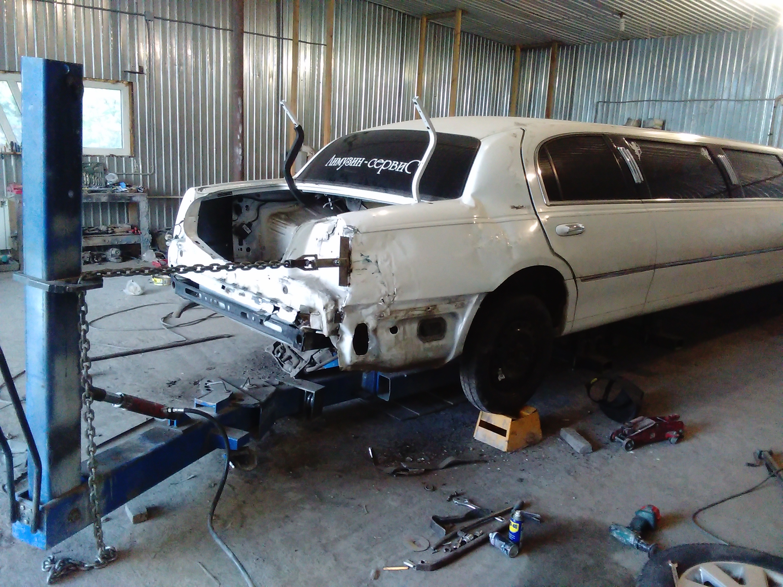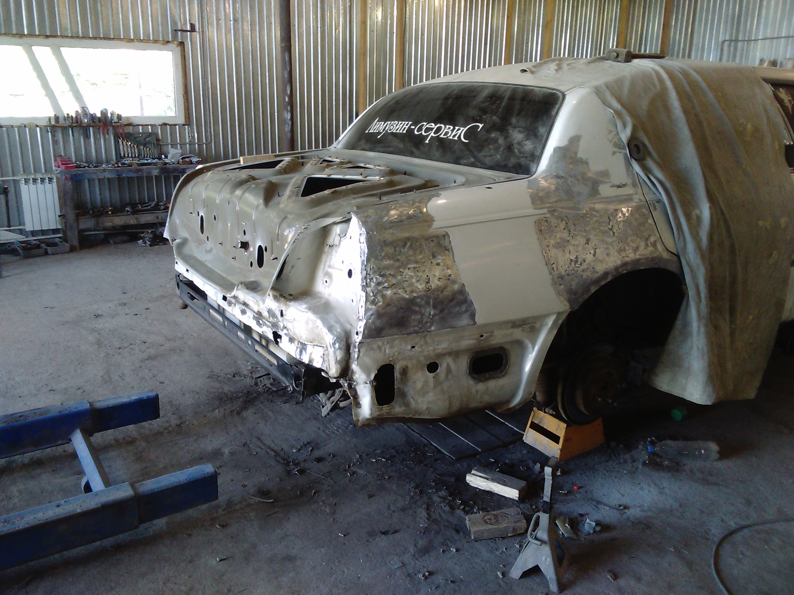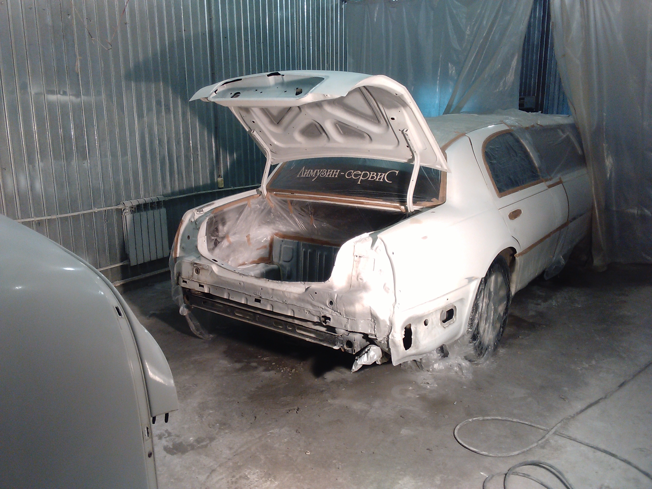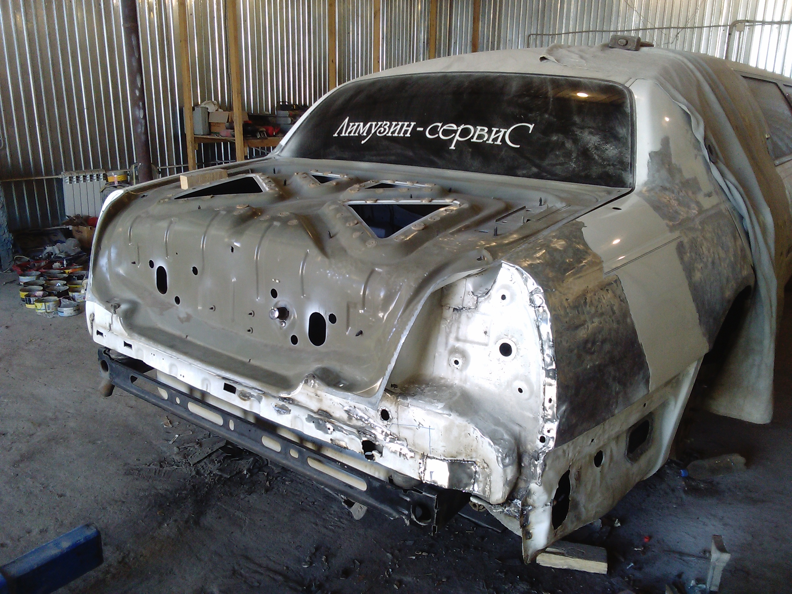 Выполнили работы по восстановлению лимузина. Сложность работы заключалась в том ,что там рама была повреждена в 2 местах.Рама скрыта под кузовом.Пришлось вскрывать.И сами усилители кузова тоже сильно были повреждены. Ещё одна сложность -это нужен был бокс в который заедет эта машина и как то умудриться покрасить её. Удалось всё.